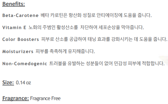 태닝기간 동안 추가적인 스킨케어로 발색을 향상시키는데 도움을 주는 제품입니다.